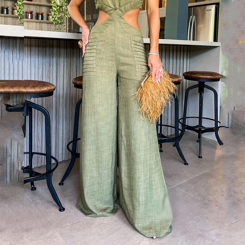 Round Neck Ruffled Loose Trousers