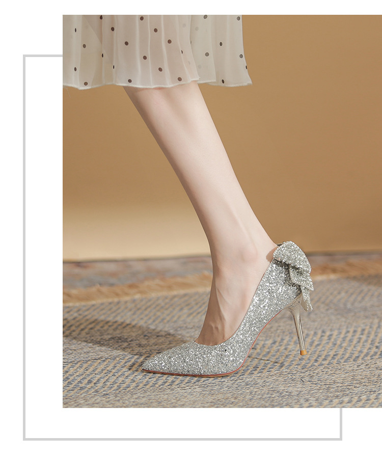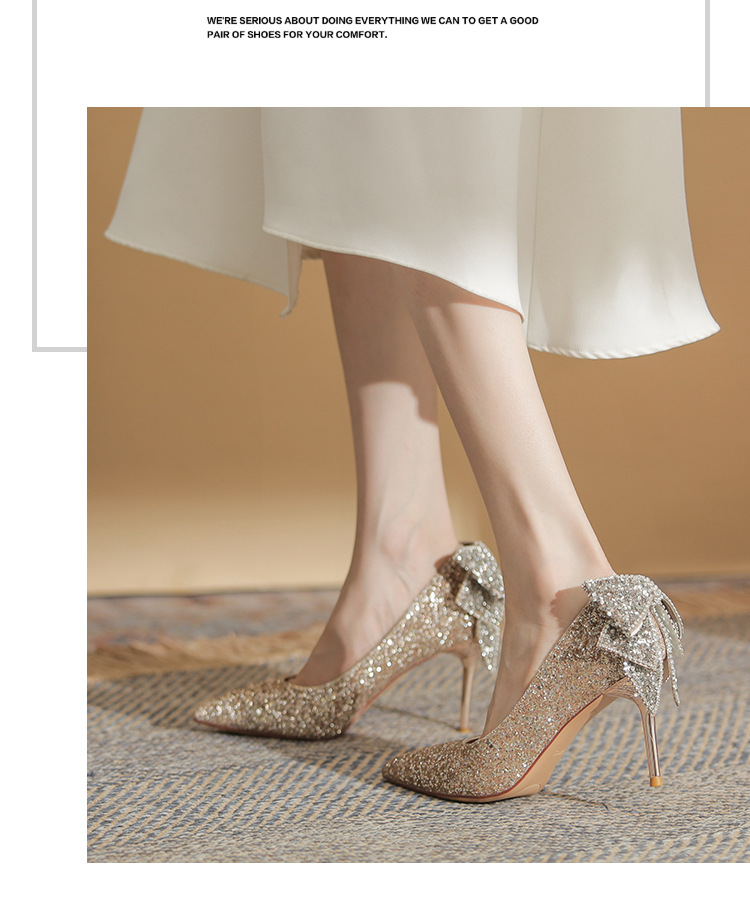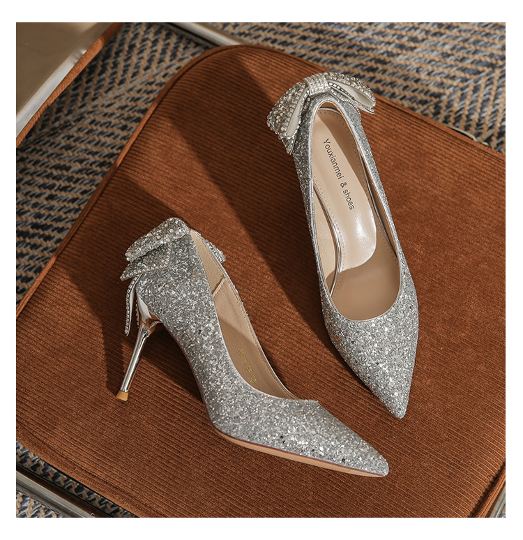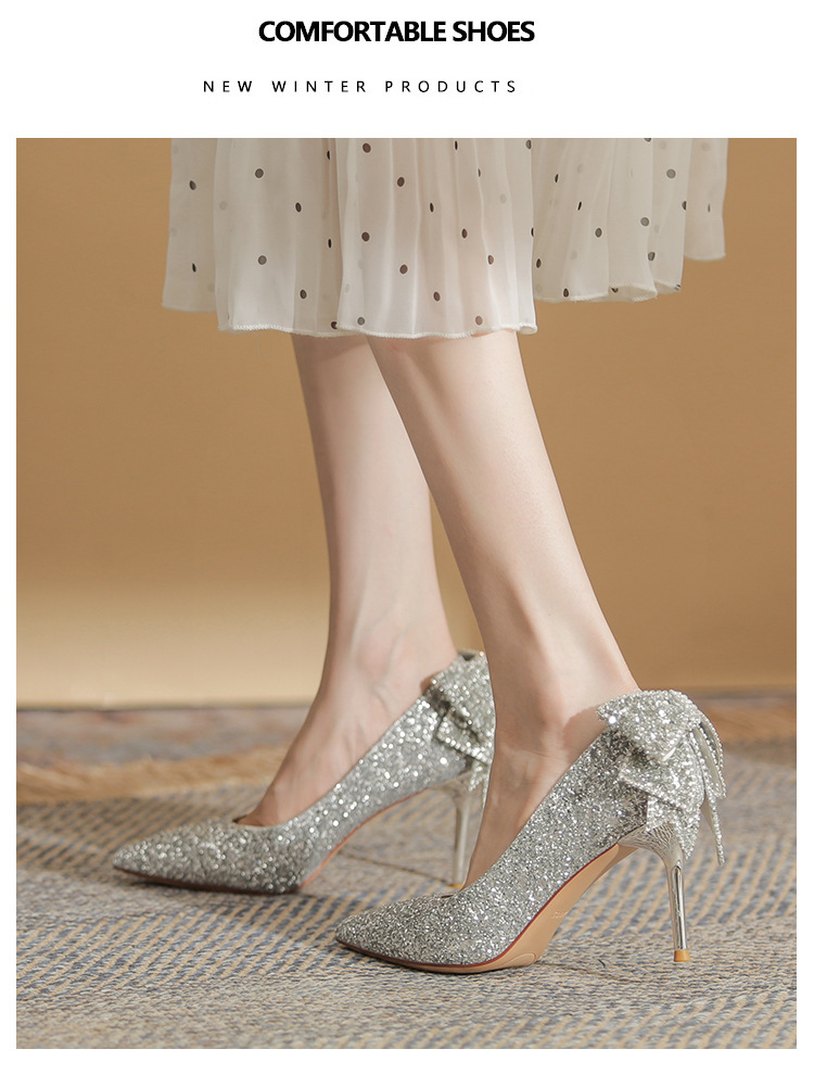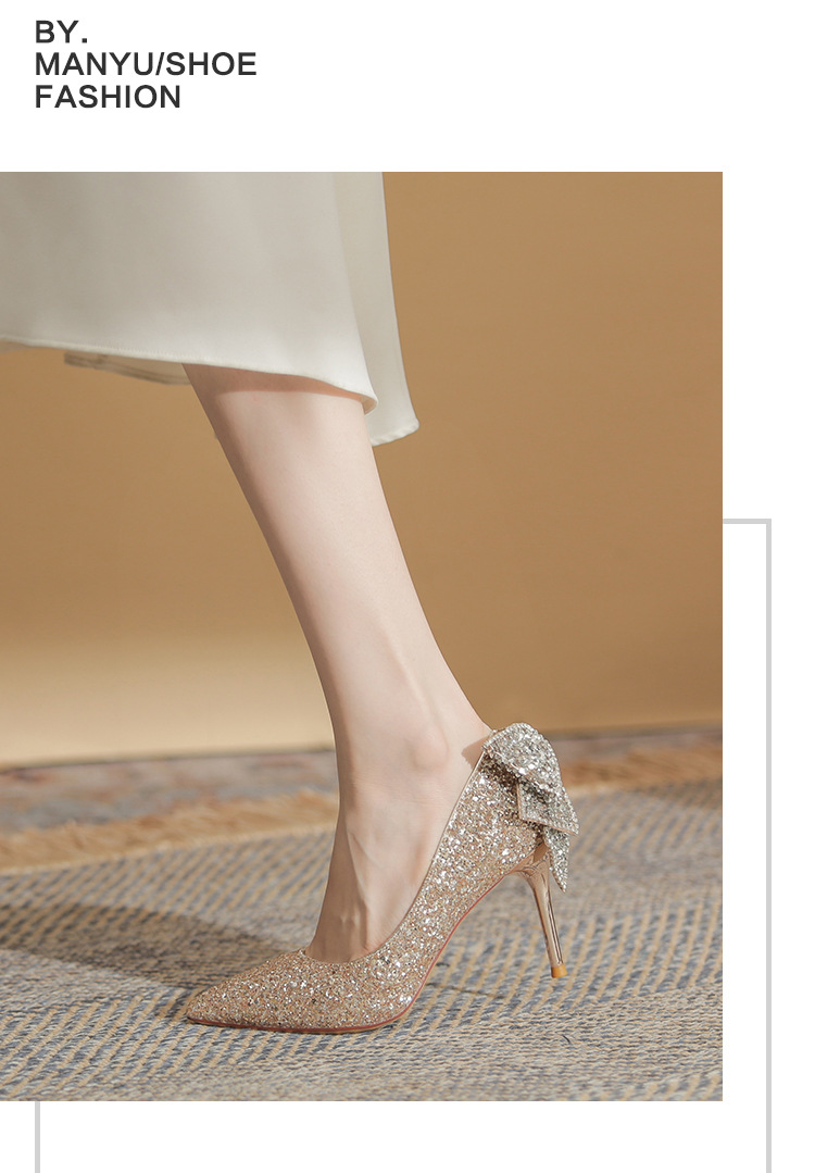 French Crystal Bow High Heel Shoes Socialite Elegant Banquet