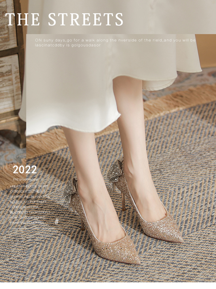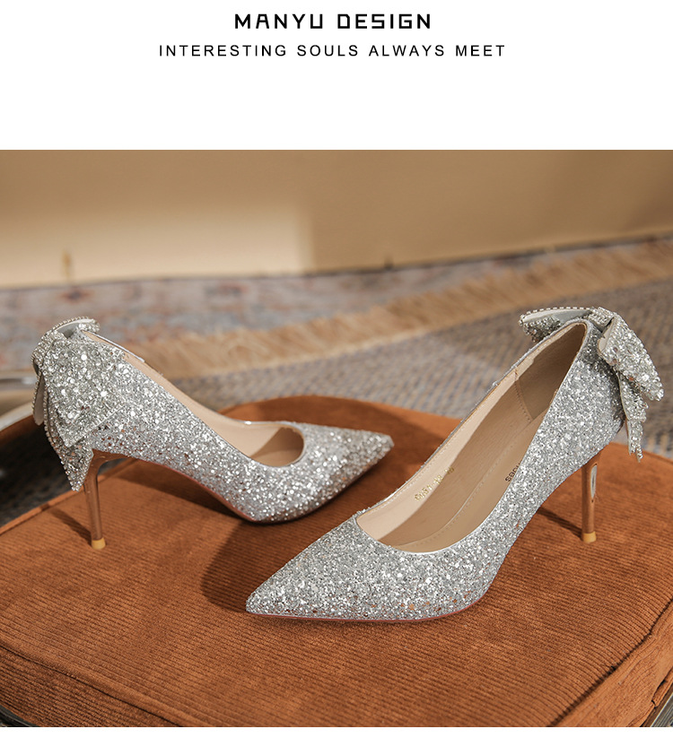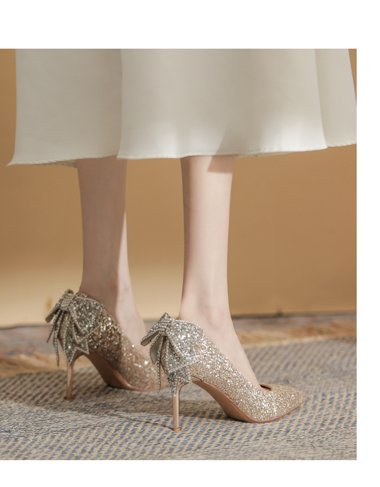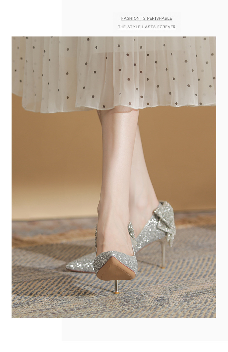 French Crystal Bow High Heel Shoes Socialite Elegant Banquet