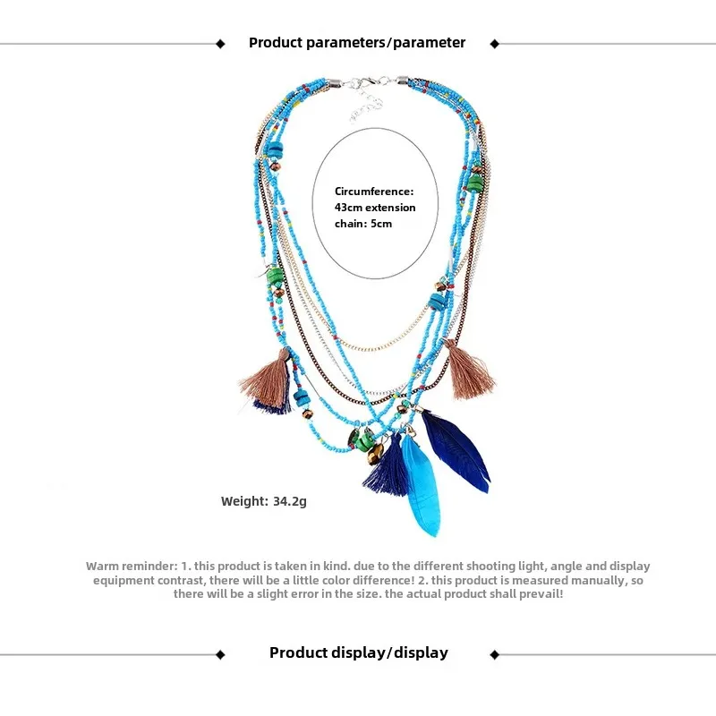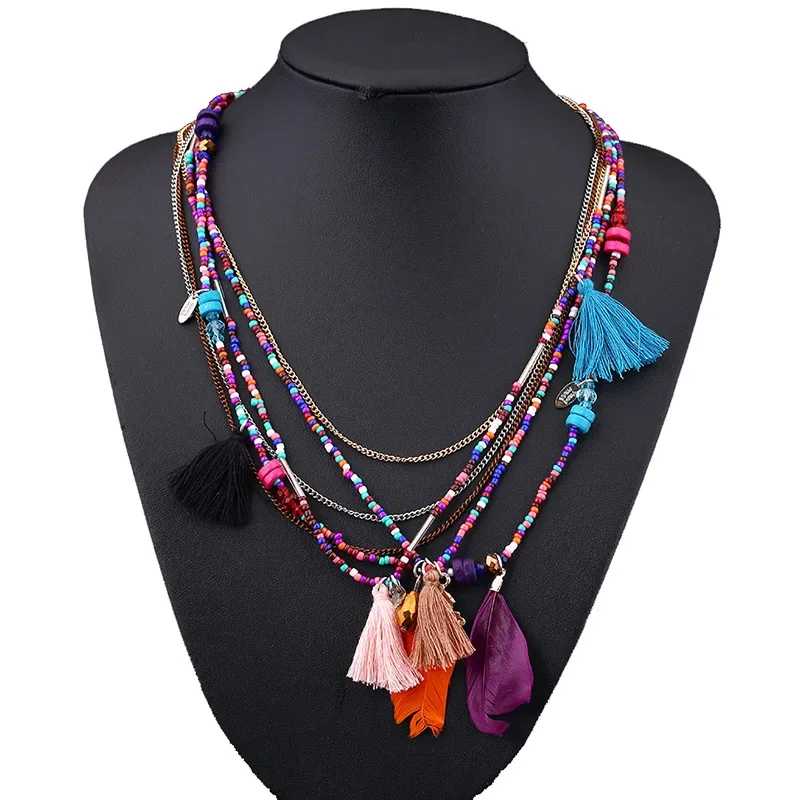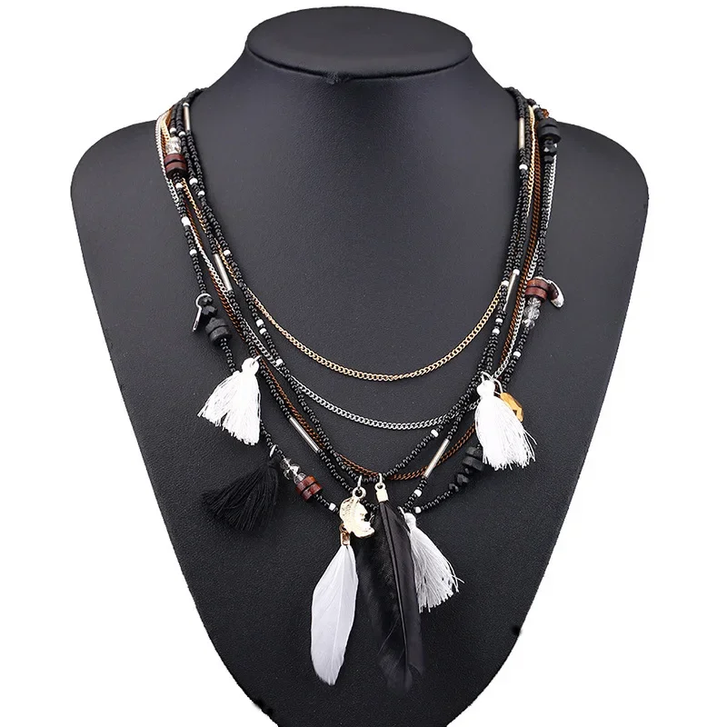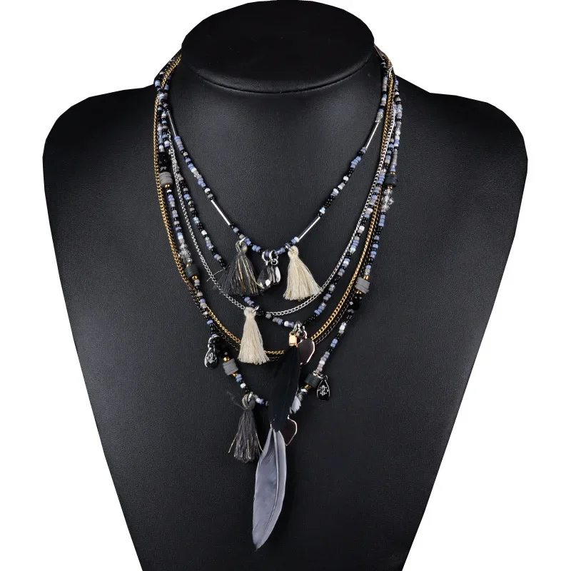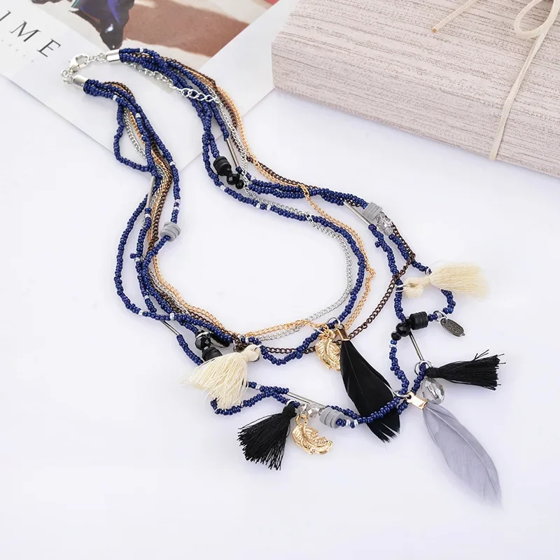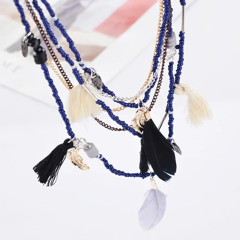 Bohemian Multi-layer Necklace Handmade Beaded Feather