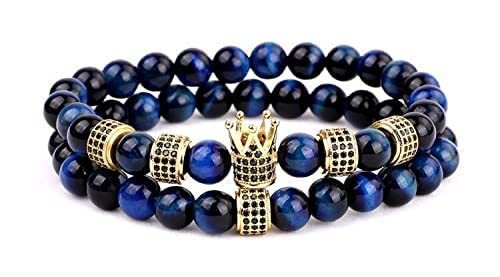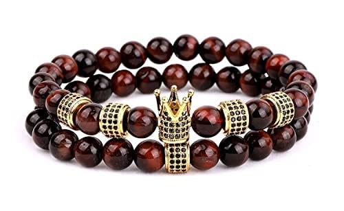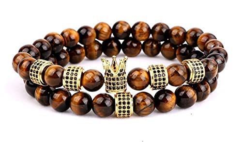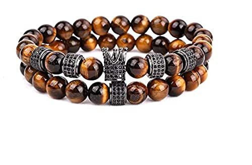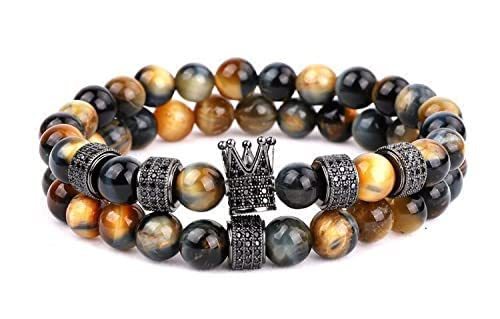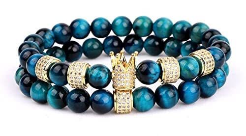 Crown Bracelet Natural Tiger Eye Turquoise Volcanic Stone Hexagonal Diamond-embedded