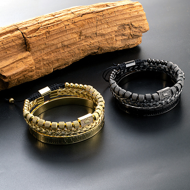 r Crown Stainless Steel Beaded Pineapple Beads Bracelet ( Three-piece Set)