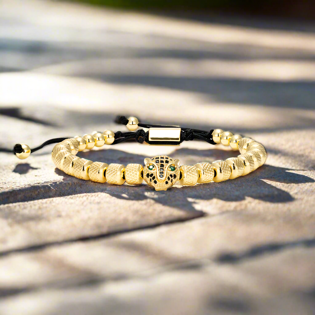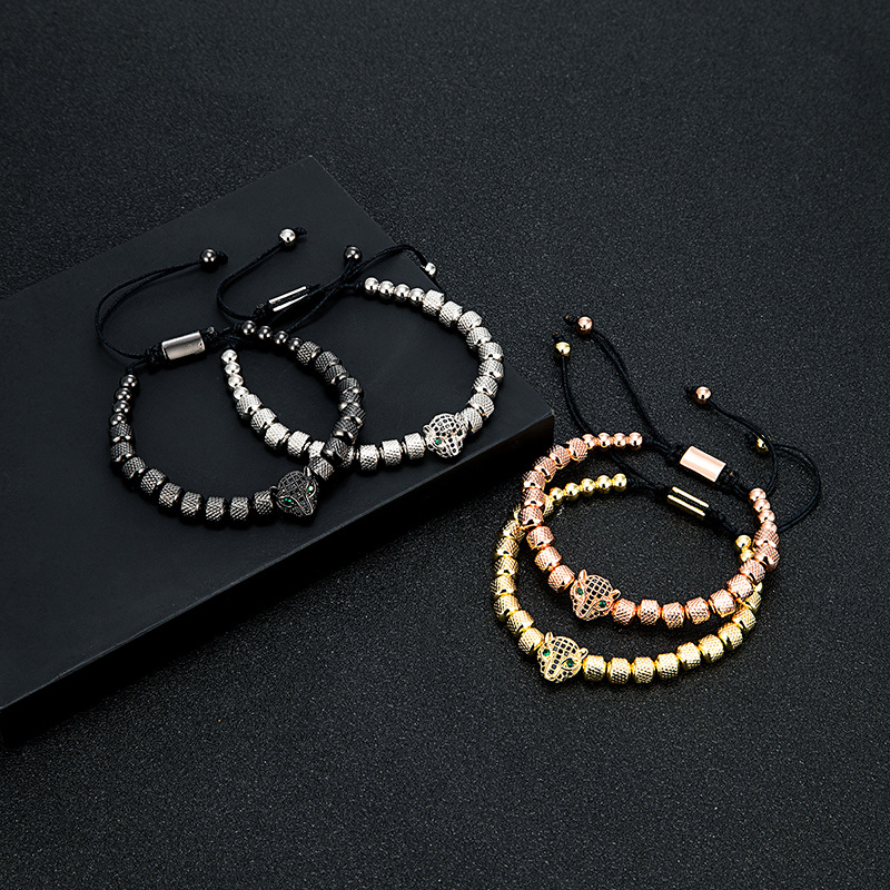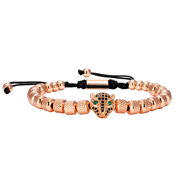 Retro Green Eye Leopard Head Stainless Steel Mesh Bead