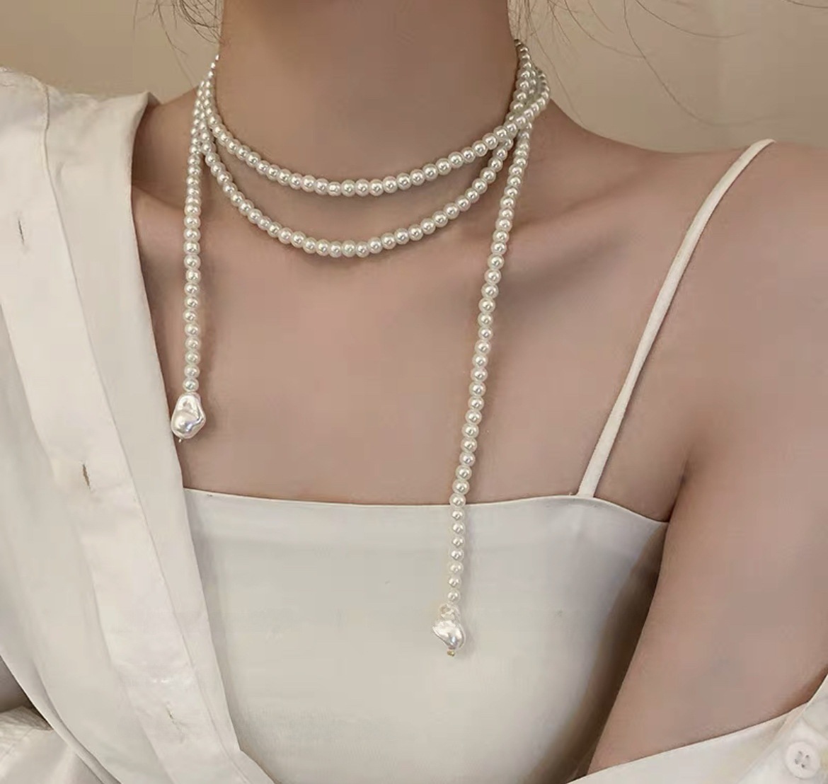 Shijiazu Stacked With Long Pearl Necklace