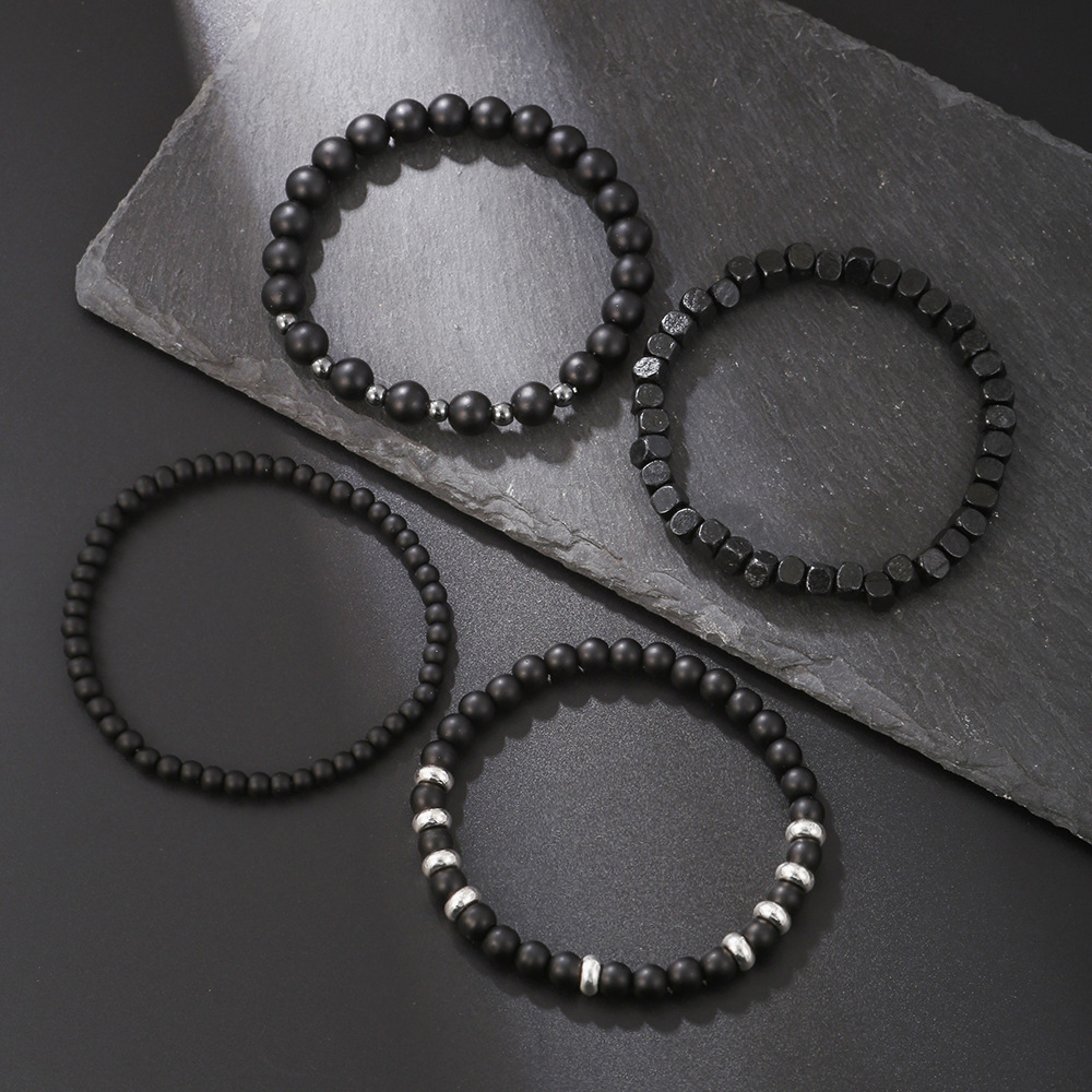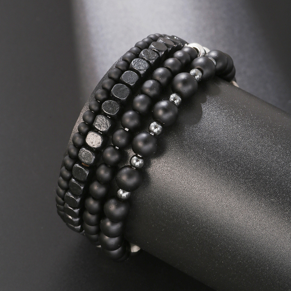 Volcanic Stone Black Frosted Black Gallstone Wooden Beads Bracelet Set Combination