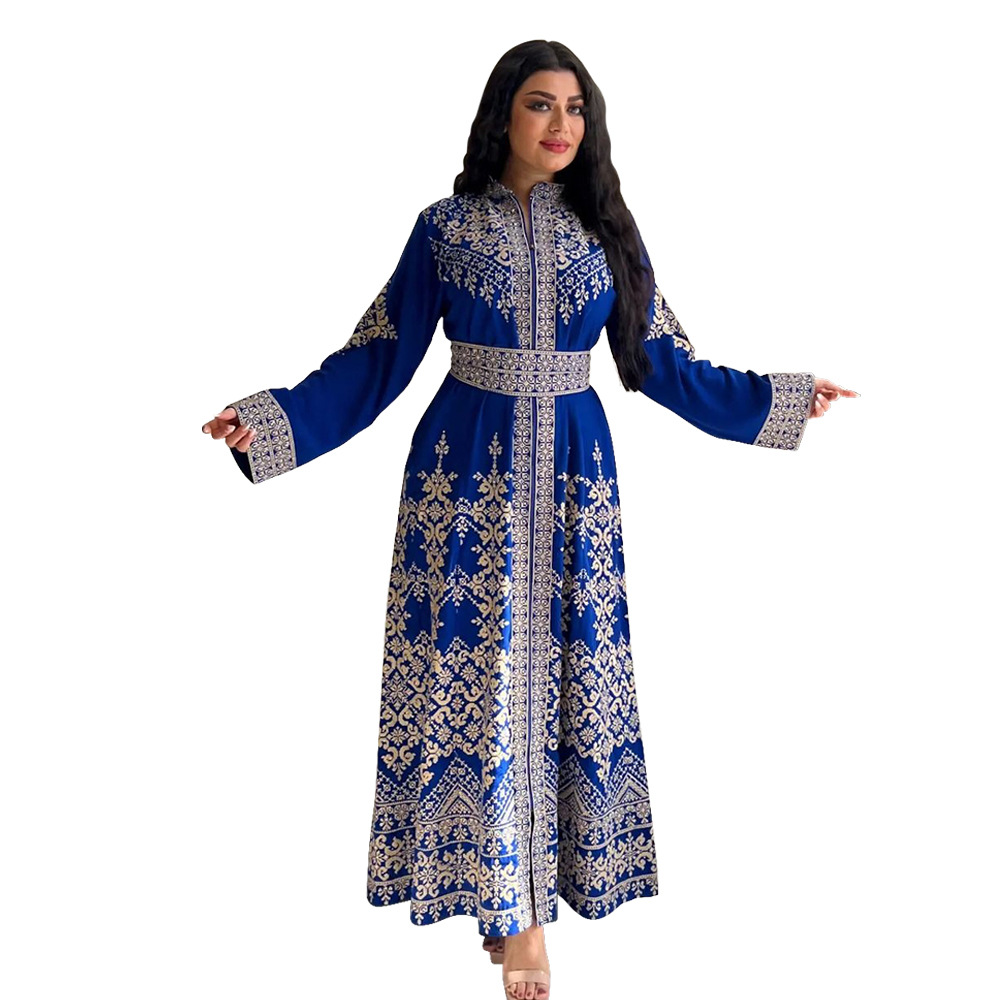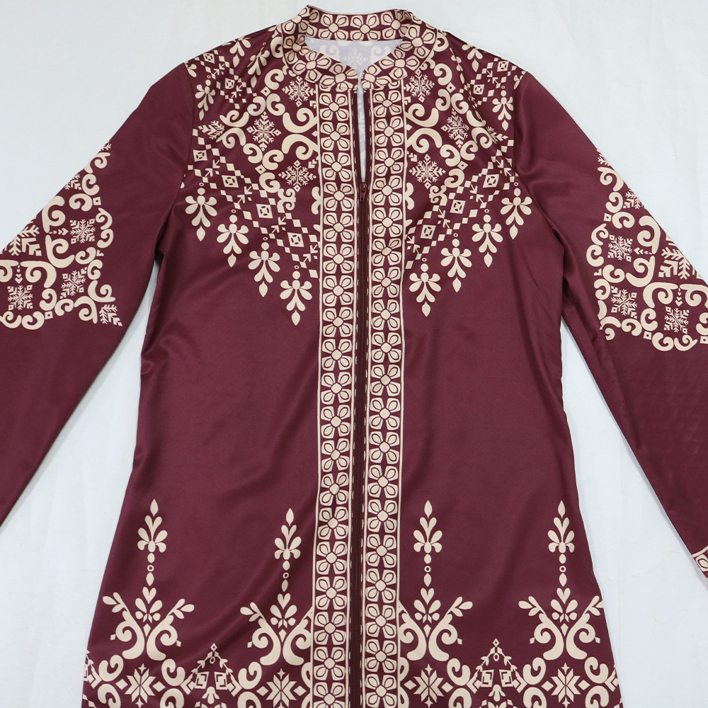 Jalabiya Arab Dubai New Printed Zipper Robe Ethnic Style Dress
